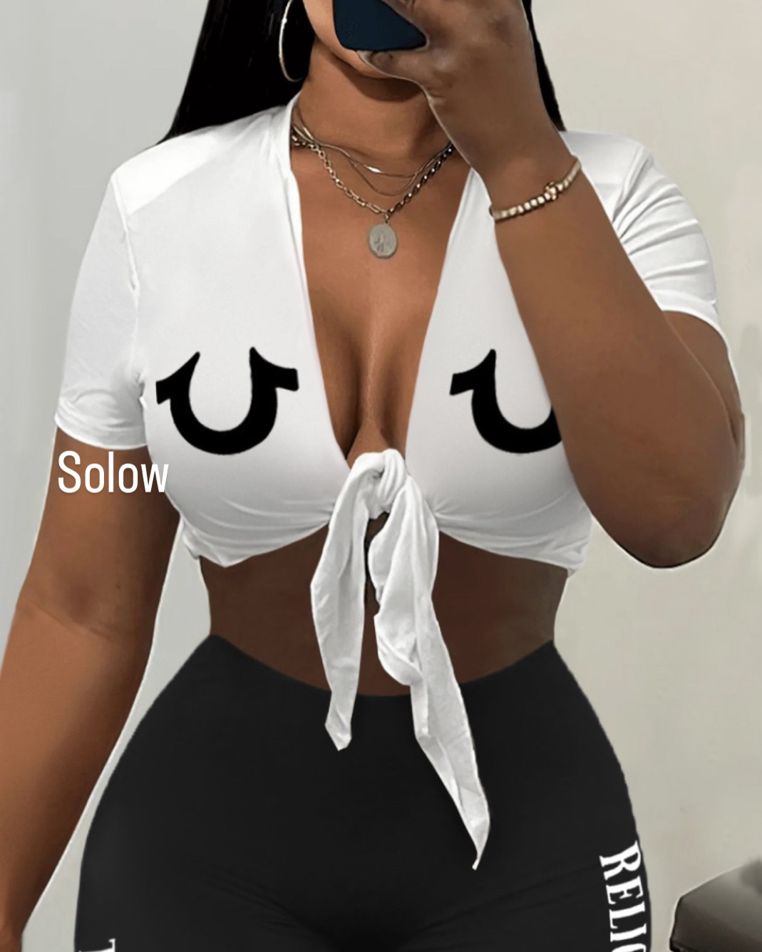 Turn heads with our Tie-Front Graphic Crop Top, designed to highlight your curves while adding a bold, stylish edge to your look. This flattering top features a deep V-neckline with an adjustable front tie closure, allowing you to customize the fit while creating a chic, confident silhouette. The soft, stretchy fabric provides all-day comfort while contouring your shape.